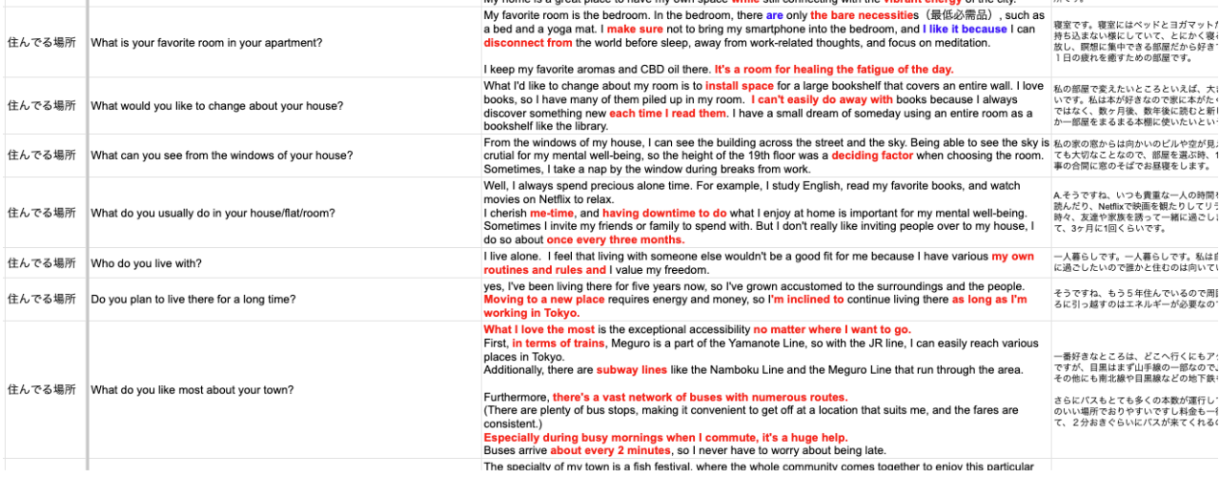 まず行ったのは、Chat GPTを活用し、お題ごとに自分のエピソードを織り交ぜた回答を300ほど用意。とにかくアウトプットを重ねました。